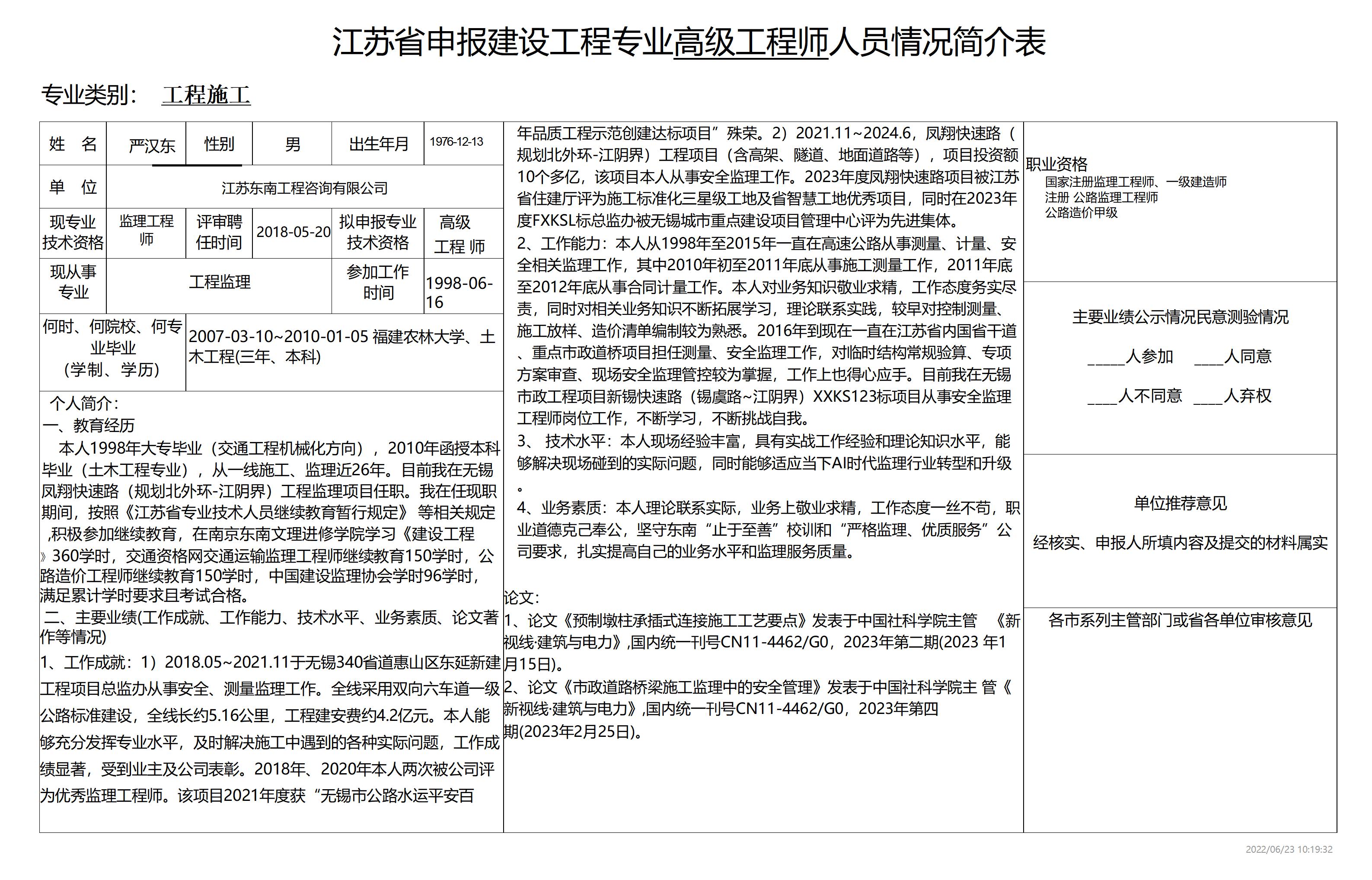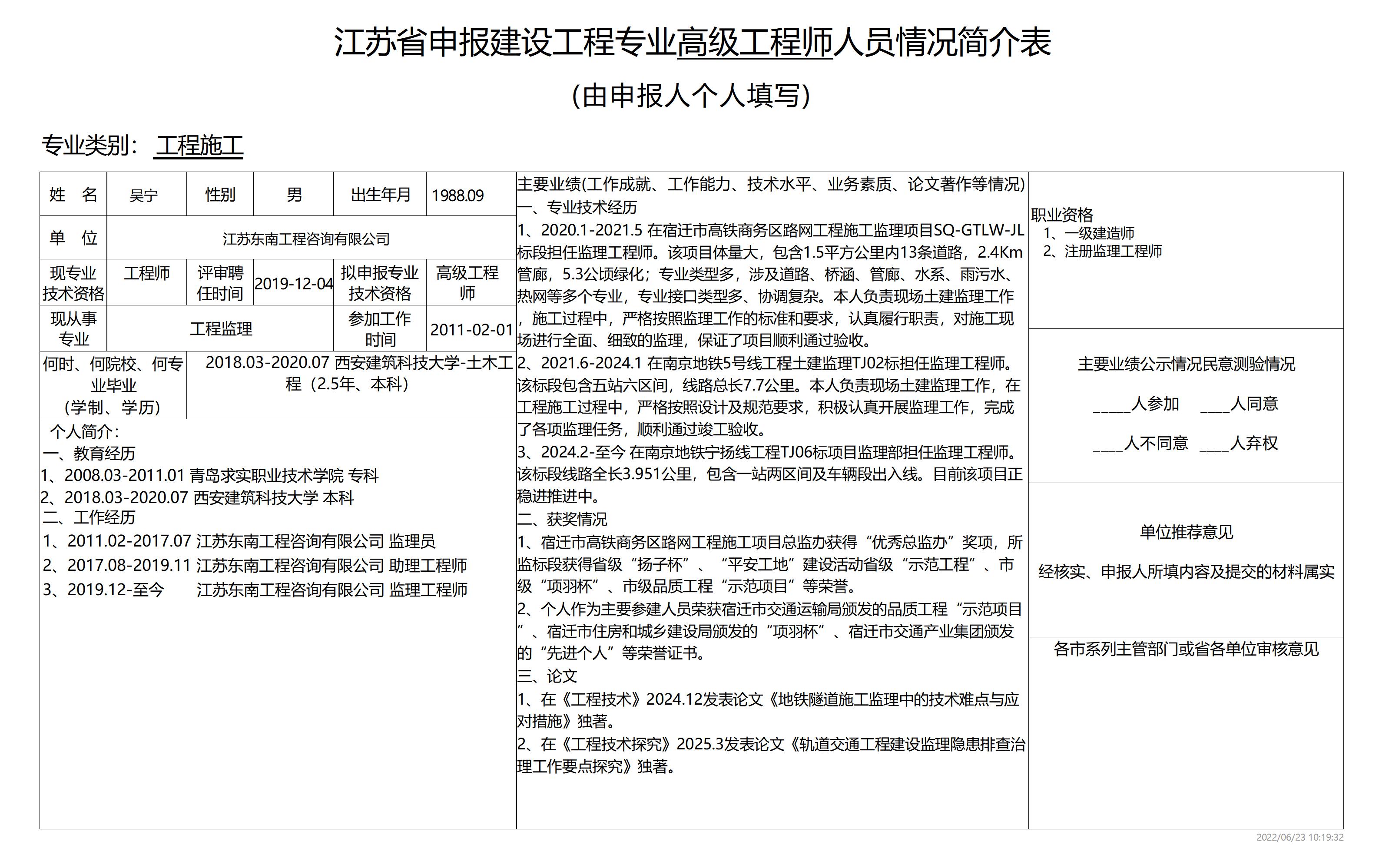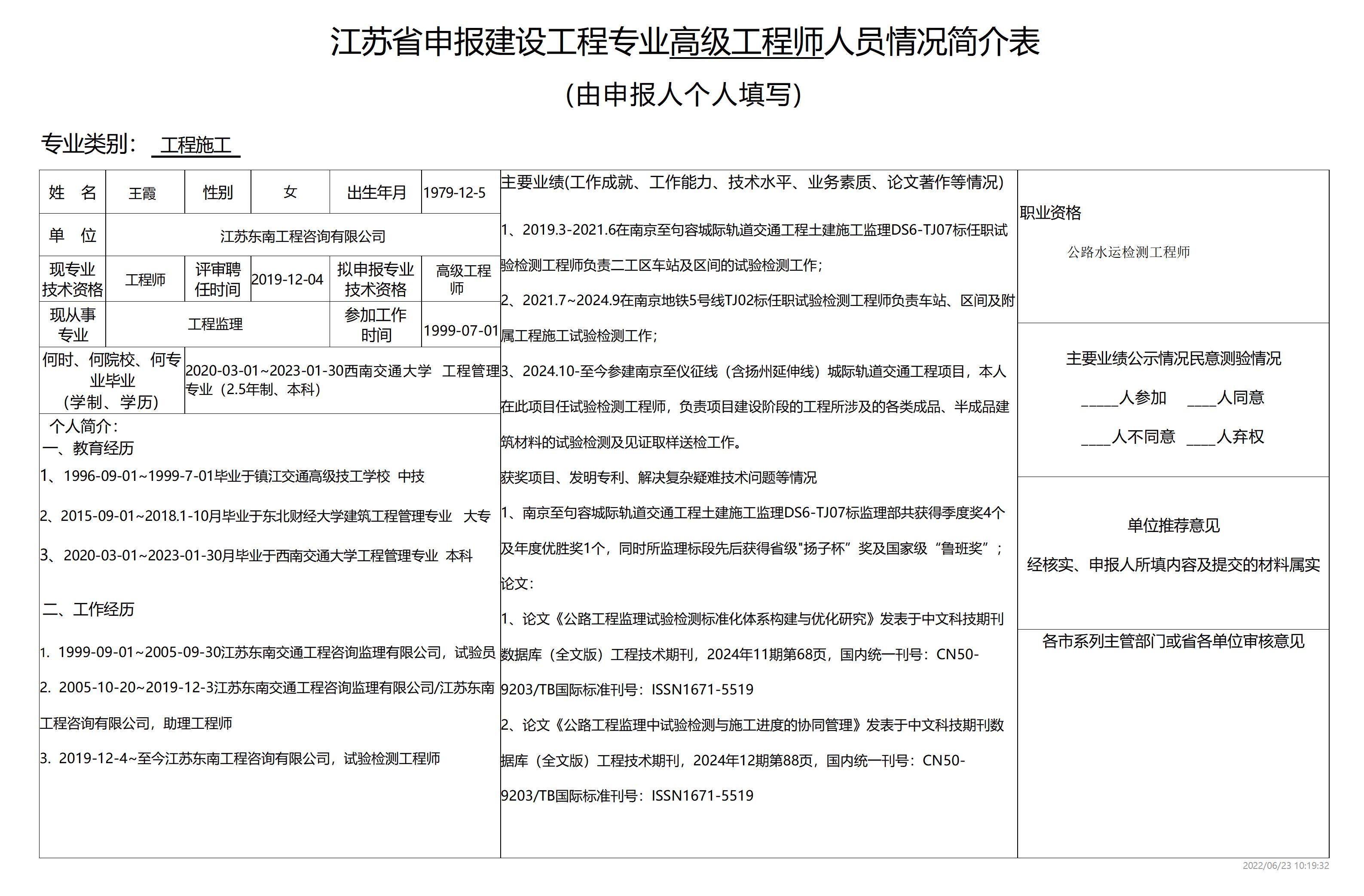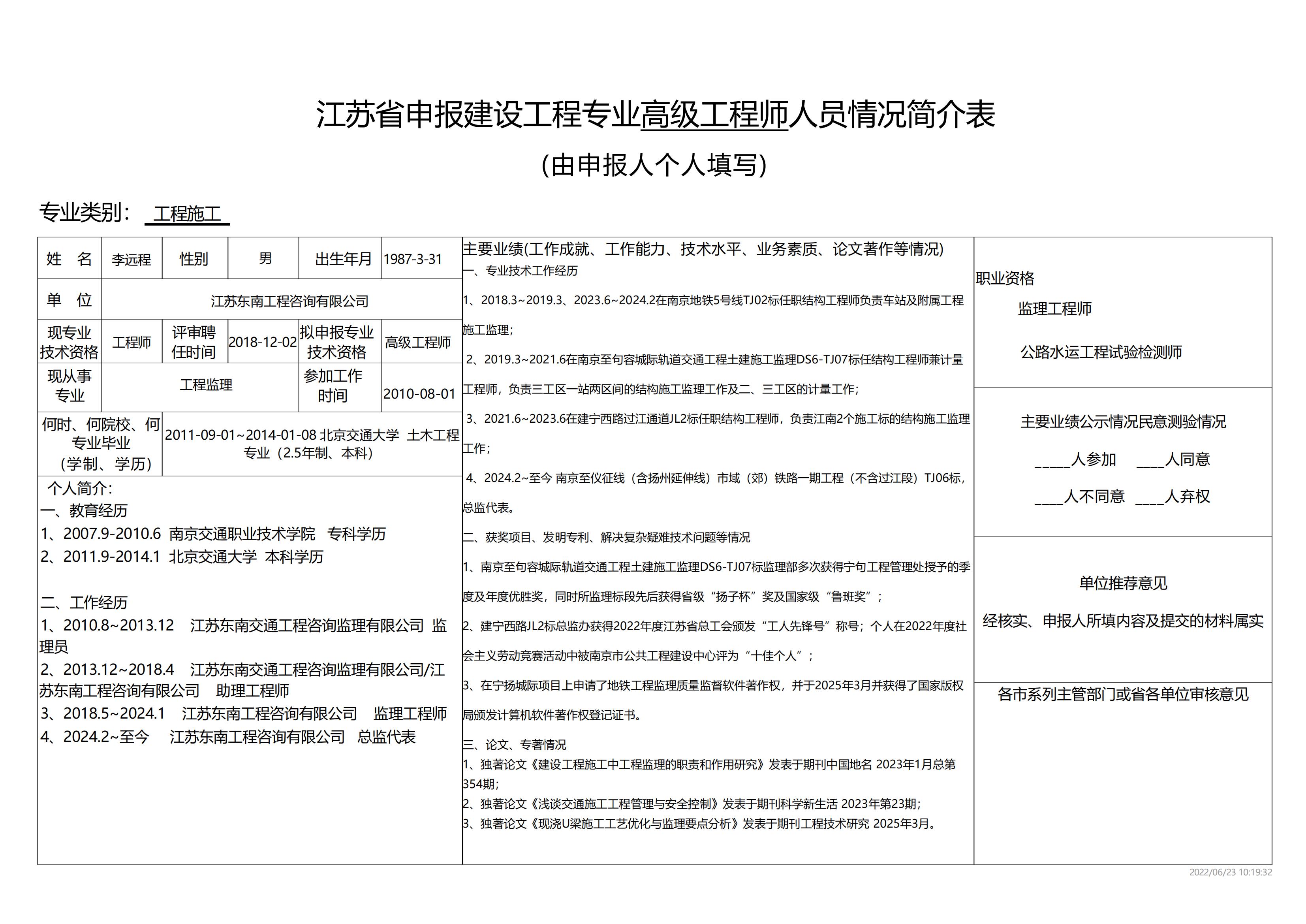 根據《江蘇省建設工程專業技術資格條件(試行)》規定,2025年度有林蘊韜等11名同志擬申報江蘇省住房和城鄉建設廳建設工程專業高級工程師。為體現公開、公平、公正原則,廣泛聽取群眾意見,現將擬申報人員信息予以公示。