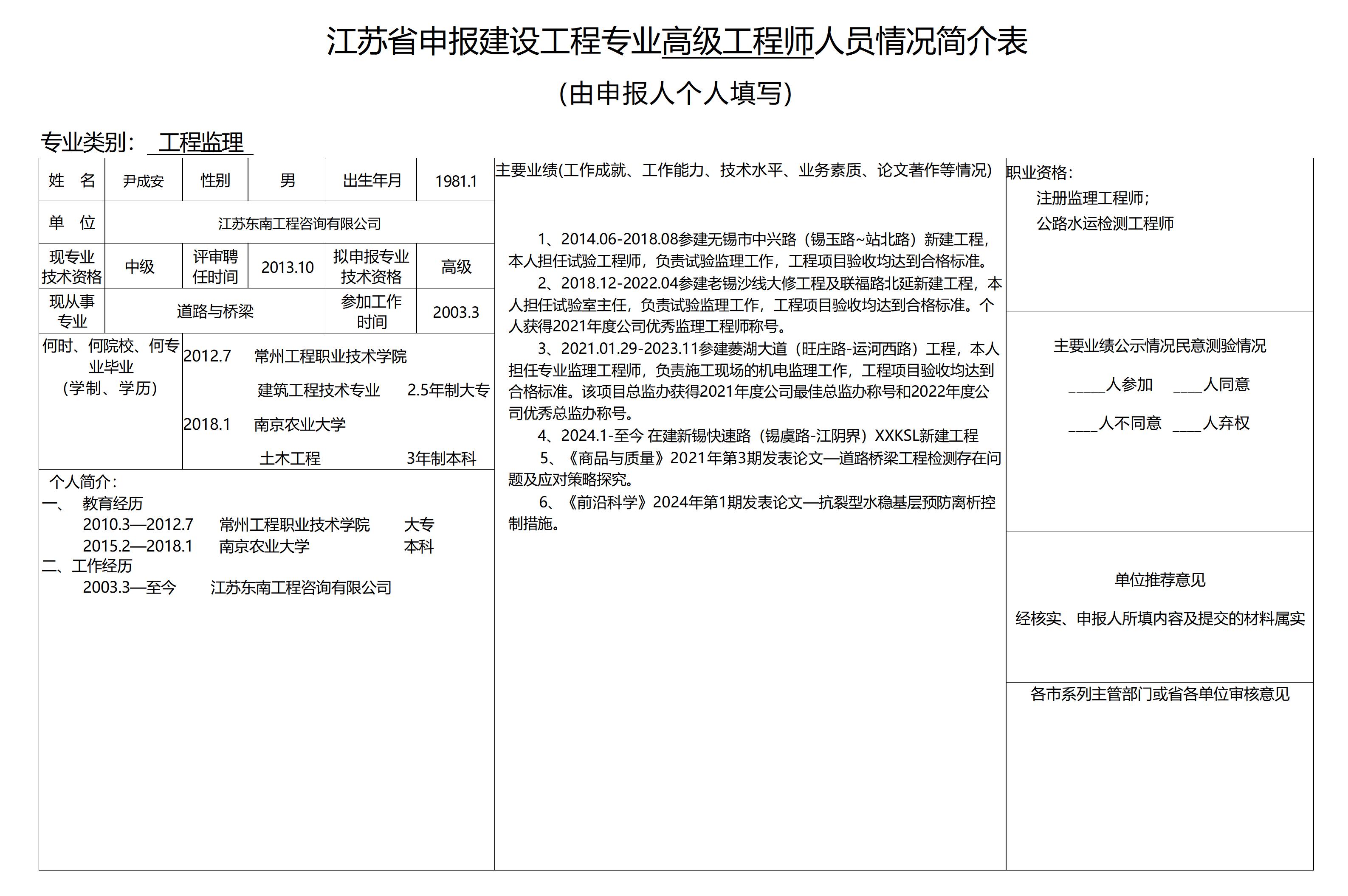 江蘇東南工程咨詢有限公司關于擬申報2025年度江蘇省住房和城鄉建設廳建設工程專業高級工程師資格名單的公示